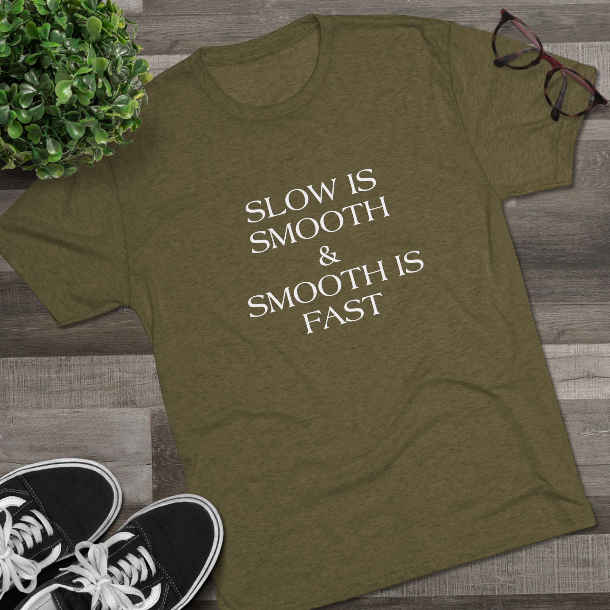 Slow Is Smooth and Smooth Is Fast” – Move with purpose, not haste. This shirt embodies the timeless wisdom that mastery comes from patience, presence, and precision. Whether you’re training, creating, or simply navigating the pace of life, “Slow is smooth and smooth is fast” reminds you that real progress flows from calm focus, not frantic effort.