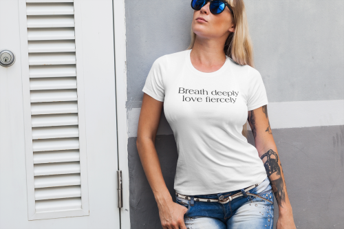 Inspirational Crew Tee — “Breath Deeply, Love Fiercely”