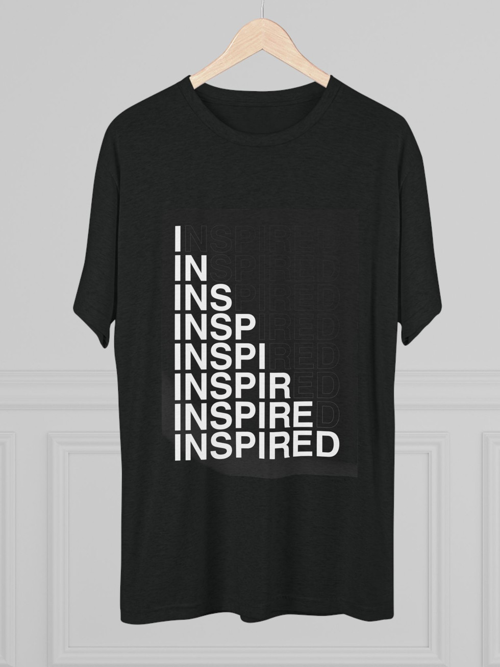 A lightweight, soft crew tee that speaks quietly but confidently. The minimalist gradient block and cascading type—breaking down the word INSPIRED—creates a calm, modern rhythm across the chest. Wear it to meetings, morning coffees, or creative sessions when you want a subtle reminder to keep moving forward. The drape of the tri-blend fabric and fitted collar give it a polished look without feeling stiff. It layers well under jackets or stands alone with jeans and sneakers, adding a thoughtful, design-forward touch to everyday outfits.