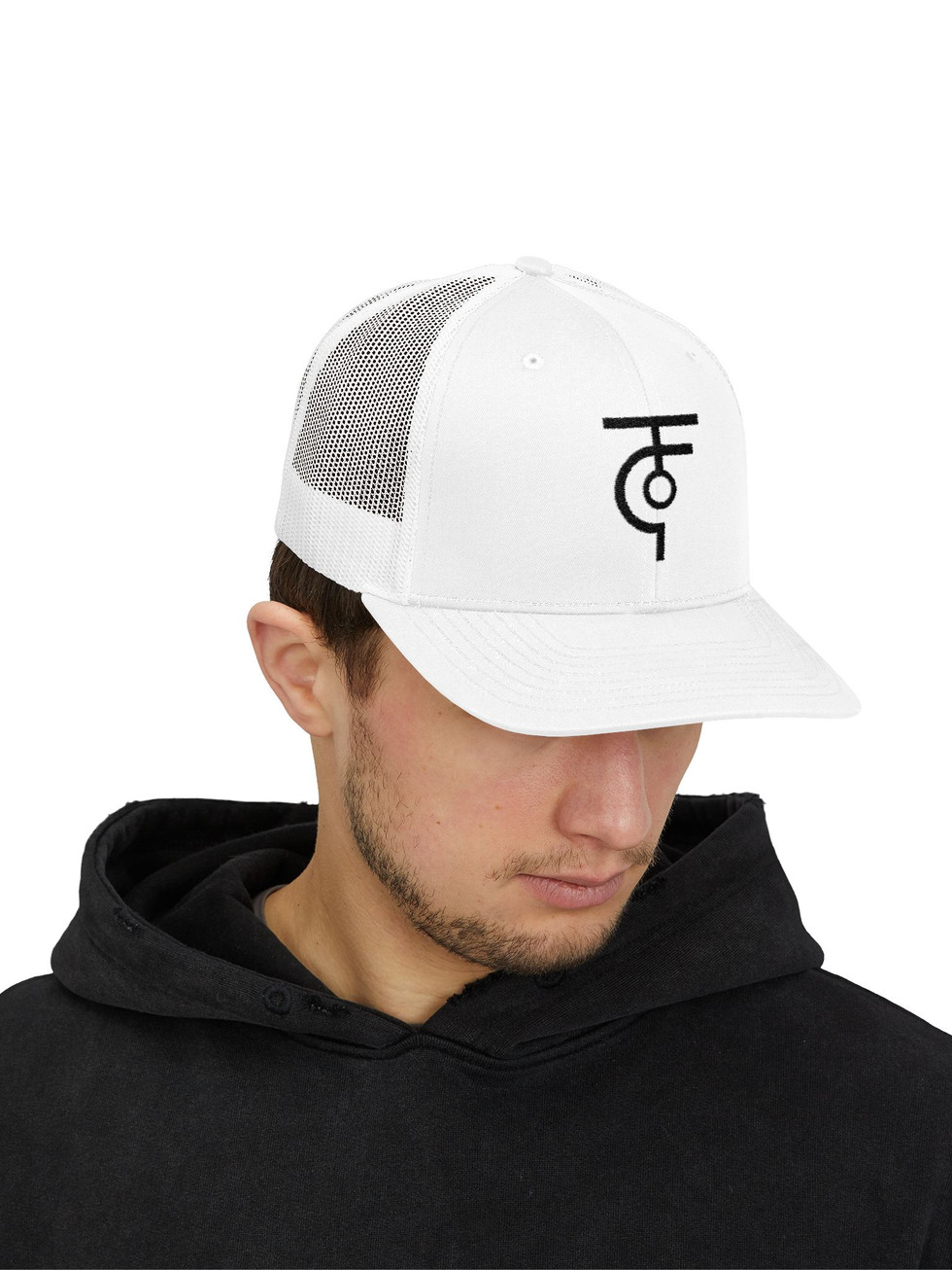 Clean lines meet breathable comfort in this structured trucker cap. The bold, minimalist emblem embroidered on the front adds quiet confidence — a symbol that reads like a personal signature. Lightweight mesh at the back keeps air flowing on busy days, while the pre-curved Permacurv® visor shades your eyes with a polished, slightly vintage silhouette. Built with a firm buckram front and a mid-profile crown, it sits crisp on the head without feeling stiff. Adjust the snap closure for a snug, all-day fit. Wear it on morning runs, weekend market runs, or whenever you want a low-key, crafted look that still reads intentional.