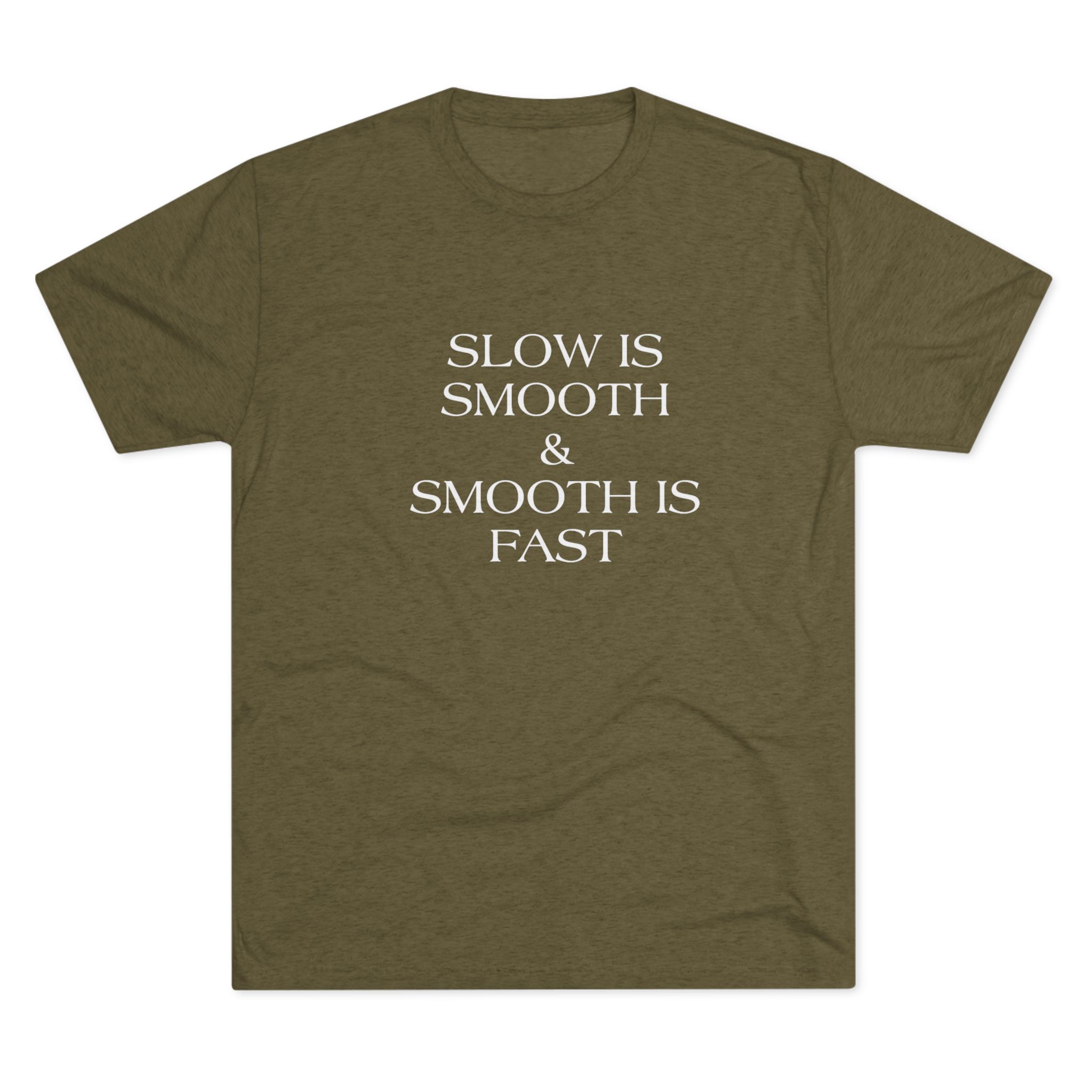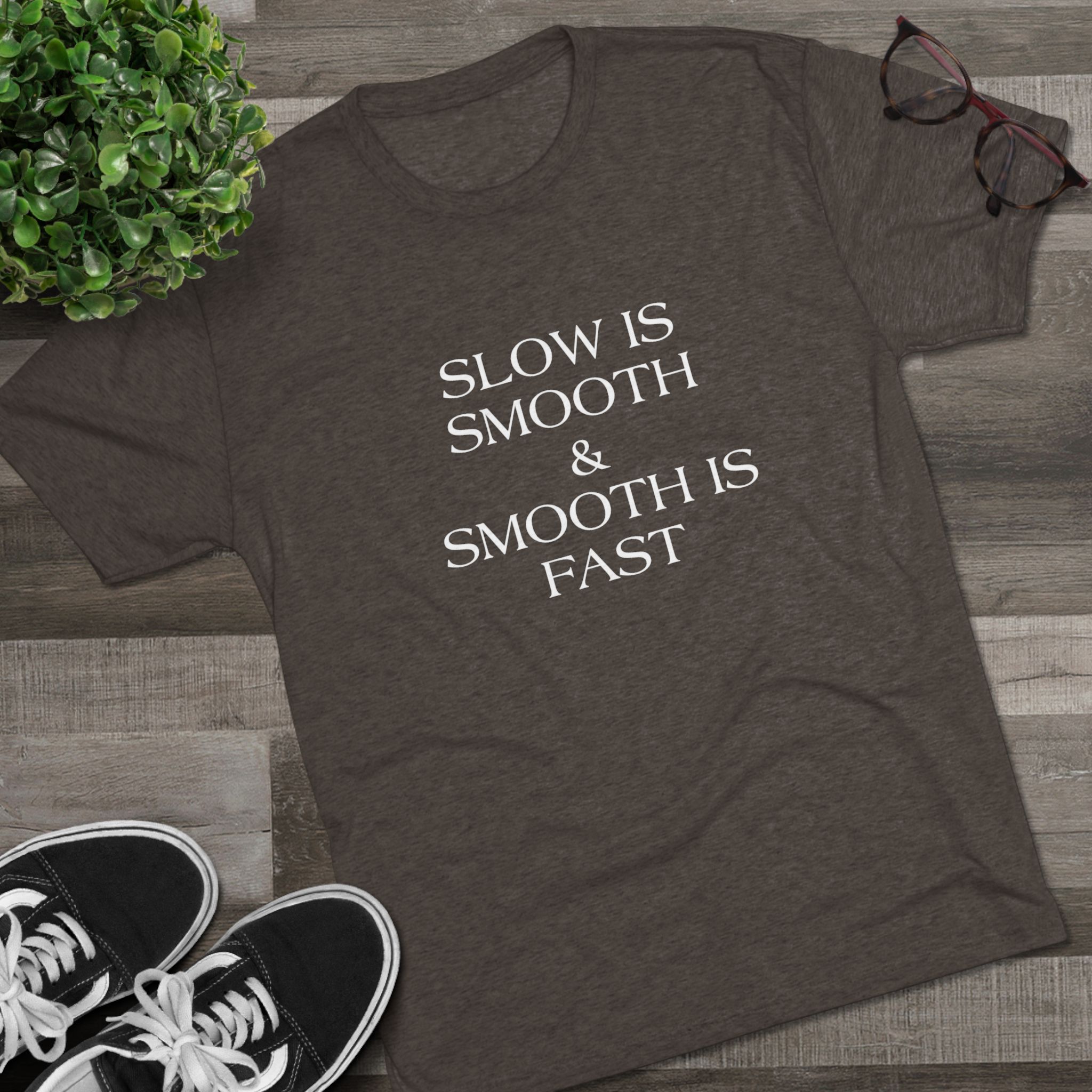 Slow Is Smooth and Smooth Is Fast” – Move with purpose, not haste. This shirt embodies the timeless wisdom that mastery comes from patience, presence, and precision. Whether you’re training, creating, or simply navigating the pace of life, “Slow is smooth and smooth is fast” reminds you that real progress flows from calm focus, not frantic effort.